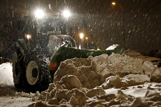 Detinuti de la Penitenciarul Jilava ajuta la deszapezirea Stadionului Dinamo, in Bucuresti, marti, 9 februarie.