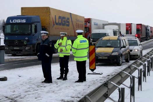 Circulatia a fost blocata, luni dimineata, pe Autostrada A1, din cauza viscolului si a zapezii abundente.