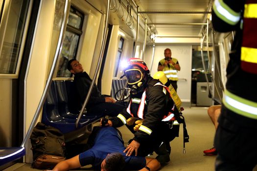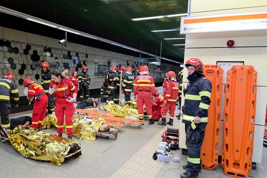 Conform scenariului, mai multe victime au rămas blocate atât pe peron, cât și în tunel. Astfel, echipajele de salvare au intervenit prompt pentru căutarea și localizarea victimelor, evaluarea funcțiilor vitale și triajul medical, imobilizarea răniților și evacuarea lor în afara zonei de risc și transportul acestora către unități medicale din București.