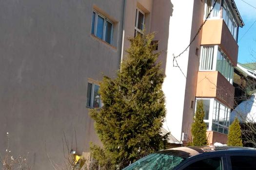 Potrivit ISU Braşov, pe fondul încalzirii vremii, a căzut zăpada de pe un bloc din Predeal.