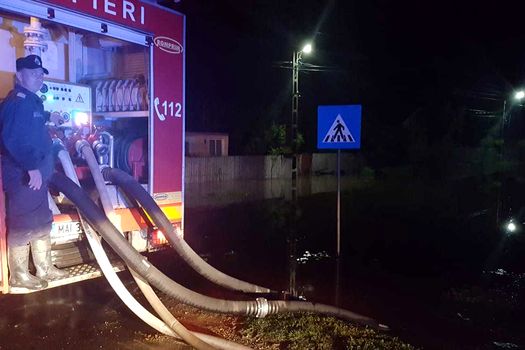 Nu au fost înregistrate victime, susţin pompierii, iar acţiunea de evacuare a apei este în desfăşurare sâmbătă dimineaţa.