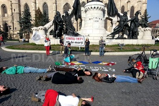 „Am dorit să facem această acţiune pentru a aduce aminte publicului despre accidentul minier de la Certej din 1971, care a fost muşamalizat de autorităţile comuniste. A fost cea mai cumplită tragedie pe timp de pace din anii ’70, când au murit 89 de persoane în urma ruperii unui dig şi a alunecării unui munte de steril din iazul de decantare al minei Certej, judeţul Hunedoara. Ne-am adunat pentru a comemora victimele şi a trage un semnal de alarmă pentru că la Certej se pune din nou problema unui proiect de minerit, care va avea un impact la fel de devastator ca acela din 1971”, a afirmat Brădăţan.