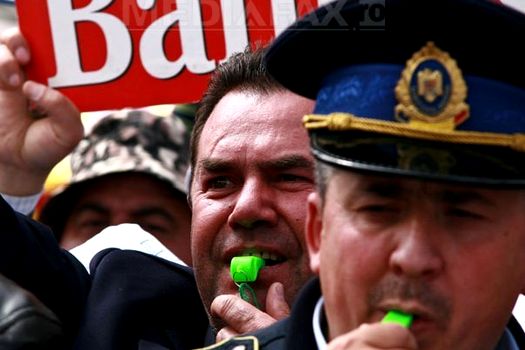 Erau poliţiştii comunitari care, deşi au venit să protesteze, nu s-au putut abţine să nu asigure liniştea şi ordinea. La sfârşitul protestului, câţiva dintre ei, prinşi de spiritul revoluţionar şi-au aruncat caschetele în aer.