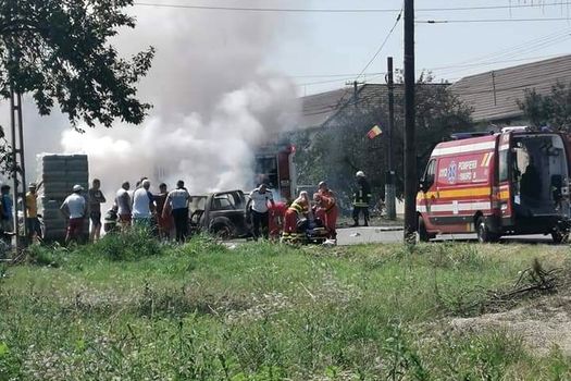 FOTO Accident grav în Arad, urmat de incendiu. Un bărbat a decedat