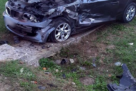 În urma impactului, microbuzul a ajuns într-un stâlp.