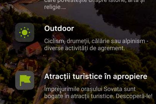 „Aplicaţia Visit Sovata conţine informaţii despre oferte turistice variate, care au fost adunate în diferite categorii principale şi care, pentru o mai bună explorare, grupează atracţiile turistice în subcategorii. În afara descrierii atracţiilor turistice, puteţi găsi fotografii şi imagini video ale acestora în galeria de imagini. Turul virtual prezintă, pentru anumite atracţii, o panoramă de 360 grade. Aplicaţia vă permite să contactaţi telefonic operatorul turistic al atracţiei sau să accesaţi pagina, de internet a acestuia. În categoria Trasee poate fi găsită şi o hartă, care vă permite să exploraţi elementele unui anume traseu educaţional prin Google Map. De asemenea, navigarea este posibilă dacă aveţi activat funcţia Geolocaţie. Pe paginile dedicate diferitelor puncte de interes puteţi găsi recomandări, aplicaţia prezintă şi alte atracţii care sunt în apropierea acestora sau care sunt similare din punct de vedere tematic”, transmite Primăria Sovata, într-un comunicat.