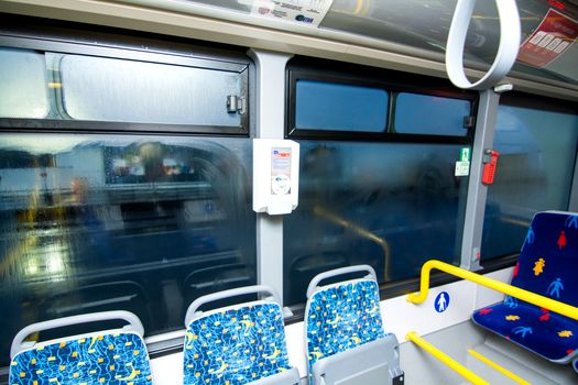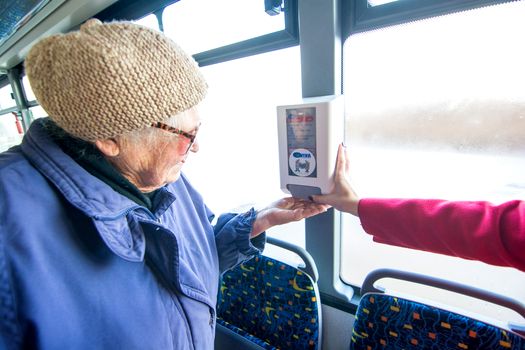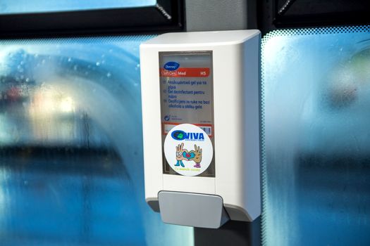 Fiecare autobuz are două dispensere cu dezinfectant şi instrucţiuni de folosire.