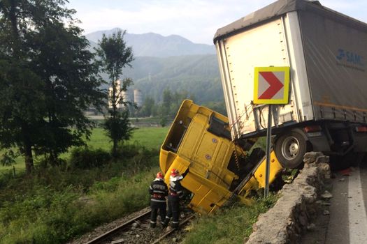 Circulaţia rutieră pe DN7 Râmnicu Vâlcea – Sibiu, în zona mănăstirii Cornetu, oprită vineri dimineaţă, după ce un TIR s-a răsturnat, blocând şi calea ferată, a revenit la normal.