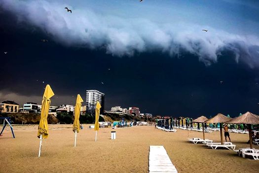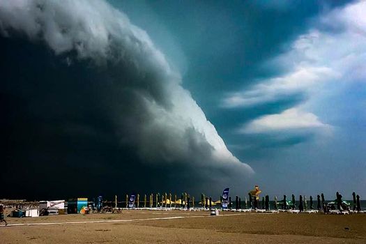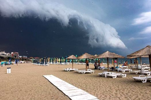 Furtuni România anunţă că au fost surprinse mai multe fotografii care înfăţişează celebrul Shelf cloud, un nor extrem de fotogenic şi apreciat de către vânătorii de furtuni.