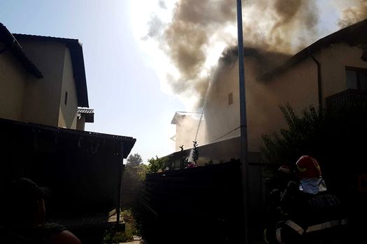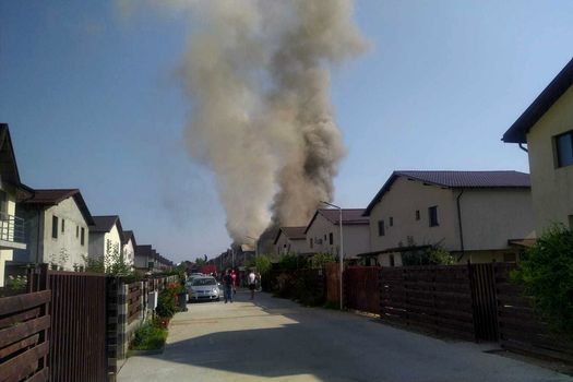 Potrivit ISU Ilfov, incendiul se manifestă cu flacără la mansarda caselor.
