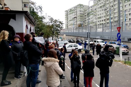 Primii iubitori ai muzicii lui Mihai Constantinescu şi-au făcut apariţia cu ore bune înainte ca sicriul care conţine trupul cântăreţului să ajungă la biserică. Un cuvânt pe care nu îl auzi de obicei în conversaţiile obişnuite rezona din grupurile de persoane zgribulite cu flori în mâini.