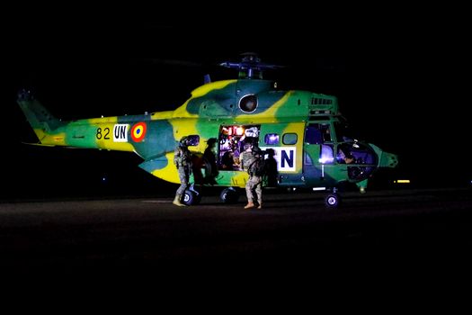 „Un element de luat în seamă a fost lipsa luminozităţii, dar sistemul de vedere pe timp de noapte Brightnite ne-a ajutat să avem vizibilitate bună pe traiect şi să identificăm locul de aterizare”, a spus căpitanul-comandor Costel Ciobanu, pilotul comandant.