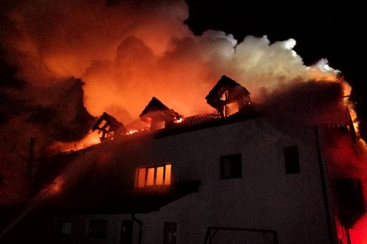 Acoperişul, mansarda şi etajul unei pensiuni din localitatea Vama Buzăului, judeţul Braşov, au fost distruse de un incendiu pornit de la coşul de fum. Intervenţia pompierilor pentru stingerea flăcărilor a durat peste patru ore.