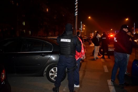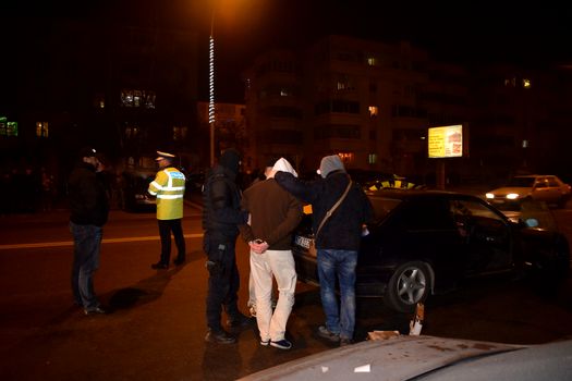 Deşi unii dintre poliţişti erau costumaţi în Moş Crăciun, la vederea mascaţilor, cele trei persoane care se aflau în maşină, doi bărbaţi şi o femeie, s-au speriat şi au blocat uşile autoturismului, forţele de ordine fiind nevoite să spargă un geam şi să-i scoată pe cei trei pe acolo.