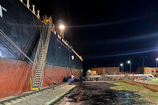 În acest moment, la faţa locului sunt toate instituţiile cu rol de combatere a poluării. Între navă şi cheu, pe o lungime de 30 m, lăţime de 0.5 m (distanţa între navă şi cheu) şi grosime de aproximativ 2,3 cm, se află o cantitate de păcură de aproximativ 200 de litri. Păcura este compactă şi îngheţată, datorită temperaturii scăzute”, a anunţat Ministerul Mediului.