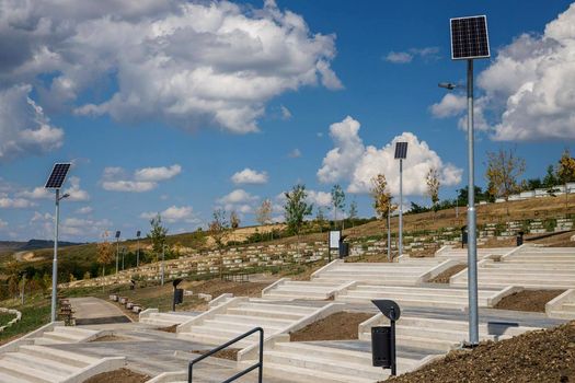 În cimitirul– parc au fost montate bănci şi au fost amenajate peste 85.000 mp de spaţii verzi, cu 5.500 de arbuşti, 2.115 de arbori şi 200 ml de gard viu şi alei pietonale.