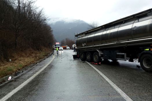 Potrivit sursei citate, accidentul s-a produs într-o curbă periculoasă la stânga, pe fondul carosabilului umed, şoferul autoturismului intrând pe sensul opus şi în coliziune cu o autocisternă care circula regulamentar.