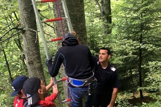 FOTO Un parapantist rus a rămas agăţat într-un copac la Sinaia, la o înălţime de zece metri
