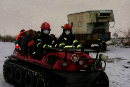 Cu ajutorul şenilatei, pompierii din cadrul Detaşamentului Giurgiu au asigurat transportul medicilor până la pacient, distanţa fiind de aproximativ 3 kilometri.