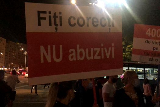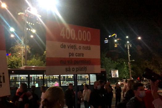 Manifestanţii au venit cu pancarte pe care sunt scrise mesaje precum „Meniul zilei: faliment” sau „400.000 de vieţi. O notă pe care nu vă permiteţi să o plătiţi” şi strigă: „Vrem să muncim!”