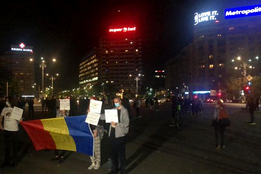 Zeci de oameni protestează în Bucureşti, miercuri seara, în semn de solidaritate cu industria HORECA. Nemulţumirile au la bază decizia autorităţilor de a închide din nou restaurantele în interior.