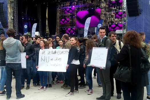 Mai mulţi studenţi ai Facultăţii de Istorie au protestat, marţi,nemulţumiţi de zgomotul produs de concertele organizate în Piaţa Universităţii cu ocazia Zilei Europei. În februarie, profesorii facultăţii au trimis o scrisoare primarului Capitalei, în care solicitau interzicerea activităţilor sonore.
