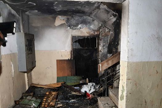 Incendiul s-a manifestat la parterul unui bloc de locuinţe, la o boxă improvizată sub casa scărilor, astfel că scara şi holurile imobilului au fost rapid inundate cu fum.
