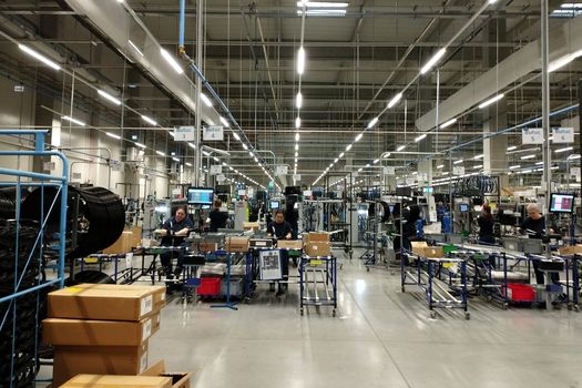 Fiecare componentă a unei biciclete, de la pedale, până la jante, anvelope, spițe, ghidon sau cadru vine ambalată în depozit. Fiecare dintre acestea sunt asamblate pe rând, de angajații fabricii, care lucrează folosindu-se de roboți industriali. Fiecare șurub este strâns de cineva, fiecare componentă, indiferent cât de dimensiune, este asamblată de angajații fabricii.