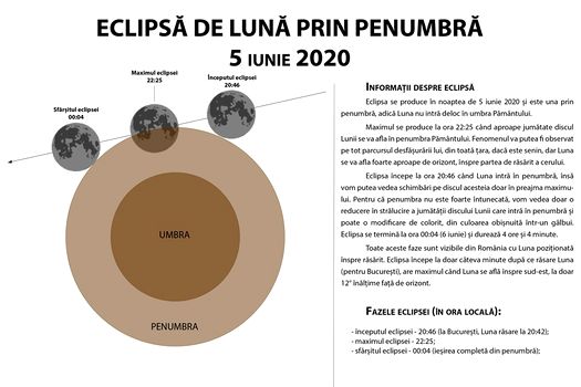 „Luna va răsări şi va avea culoarea schimbată. Va trece prin umbra planetei noastre. Astăzi se produce faza de lună plină şi când se va produce bă trece prin conul de penumbră al planetei. O să răsară la ora 8.42 şi la 4 minute va intra în eclipsă. Cu ochiul liber nu se va vedea mare doferenţă şi folosiţi un binoclu. Posibil să prindeţi o culoare un pic închisă la maximul eclipsei la ora 22.43”, a explicat, ieri, fenomenul astronomul Elizabeth Petrescu de la Observatorul Astronomic din Bucureşti.