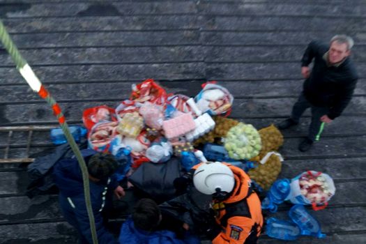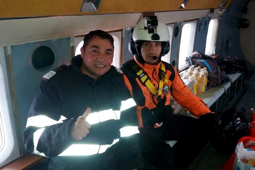 „În urma apelului marinarilor sinistraţi, elicopterul MAI s-a deplasat din Capitală la Călăraşi, de unde a preluat alimentele transportate pe stadionul municipal din localitate, pentru a fi încărcate la bordul aeronavei. După identificarea barjei pe Braţul Bala (Braţul Rău), echipajul elicopterului MI8, sprijinit de pompieri din cadrul I.S.U. Călăraşi, a reuşit să descarce la bordul ambarcaţiunii toate alimentele, în urma unei acţiune inedite de coborâre cu troliu”, anunţă MAI.