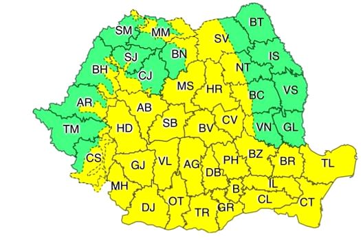 A doua atenţionare cod galben va fi în vigoare duminică, în intervalul orar 8.00-18.00. Este vorba despre intensificări ale vântului, ninsori în Carpaţii Orientali şi temporar viscol la peste 1700 de metri.
