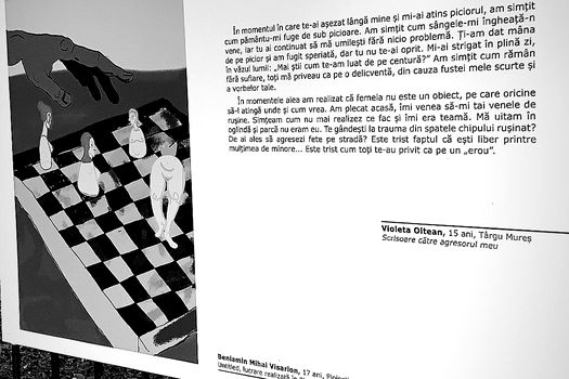 Tu cum vezi universul hărţuirii stradale? „Ce faci frumoaso, singurică, singurică?” sunt doar câteva dintre abordările folosite de anumiţi indivizi pentru a intimida fetele şi femeile şi asta, zilnic. Prin urmare, 10 adolescenţi şi adolescente au acceptat să-şi folosească arta pentru a face fenomenul mai vizibil.