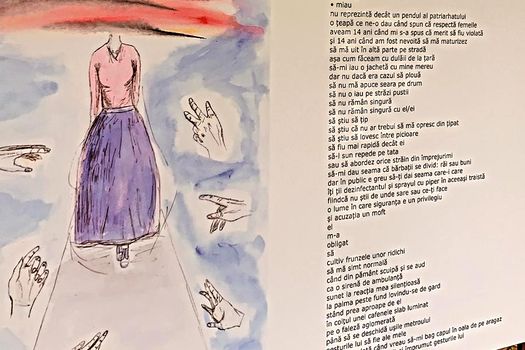 - „Nu există zi în care să ieşi pe stradă şi să nu ţi se adreseze un cuvânt ofensator. Asta e lucrarea mea. Am vrut să fie cât mai la obiect. Am inclus câteva din lucrurile care ni se spun nouă. Am vrut să exprim şi ce simtitm noi, ruşine, umilinţă, teamă, frică. Ne simţim intimdiate şi nu avem pe cineva cu noi care să ne apere pentru că de cele mai multe ori suntem singure, iar ăsta e un sentiment destul de neplăcut. Lumea trebuie să ştie că nu este ok ceea ce se întâmplă. explică Oana Poenaru, artistă