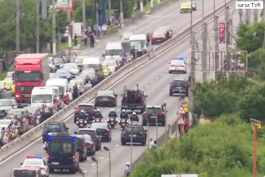 Oamenii au coborât din maşini pe DN1, la intrarea în Capitală, ca să aplaude maşina în care se află Papa Francisc, suveranul pontif ajungând pe teritoriul românesc în urmă cu circa 40 de minute.