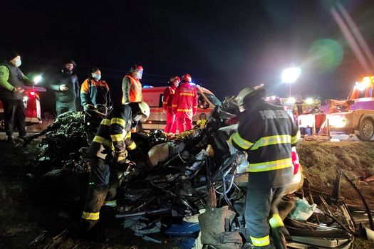 În urma impactului frontal, cele două persoane, soţ şi soţie, în vârstă de 40, respectiv 36 de ani, aflate în autoturism au rămas încarcerate.