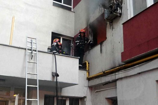 Pompierii au reuşit să stingă focul şi verifică dacă mai sunt locatari în celelalte apartamente, deoarece este mult fum pe casa scării.