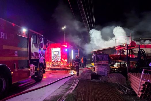 La prima hală, în care erau depozitate materiale de construcții și textile, incendiul a fost localizat și se lucrează pentru lichidare. Suprafața afectată este de aproximativ 1000 de metri pătrați.