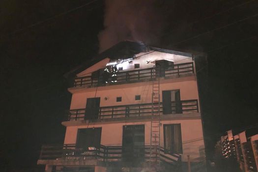 UPDATE: Incendiul izbucnit, vineri seara, la o pensiune din Predeal, a fost stins după o intervenţie de trei ore. Pompierii spun că intervenţia a fost dificilă, din cauza frigului, în condiţiile în care apa a îngheţat pe furtun.