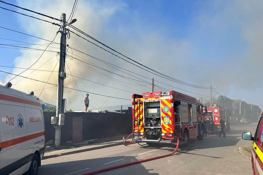 Pompierii continuă să intervină pentru stingerea flăcărilor.