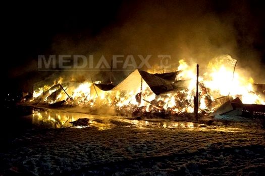 Incendiul se manifestă extrem de violent atât în depozitul de furaje, cât şi în grajdul cu animale, iar primele estimări arată că aproximativ 30 de vaci au ars de vii, alte 20 fiind salvate.
