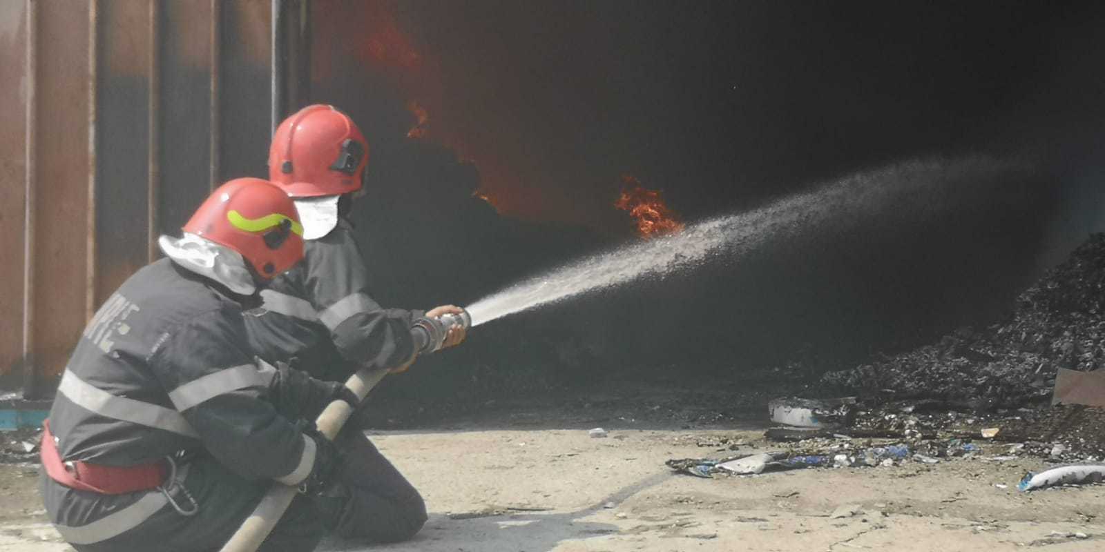 Intervenţia salvatorilor este foarte grea din cauza fumului dens degajat în urma procesului de ardere, dar şi din cauza temperaturilor ridicate de afară.