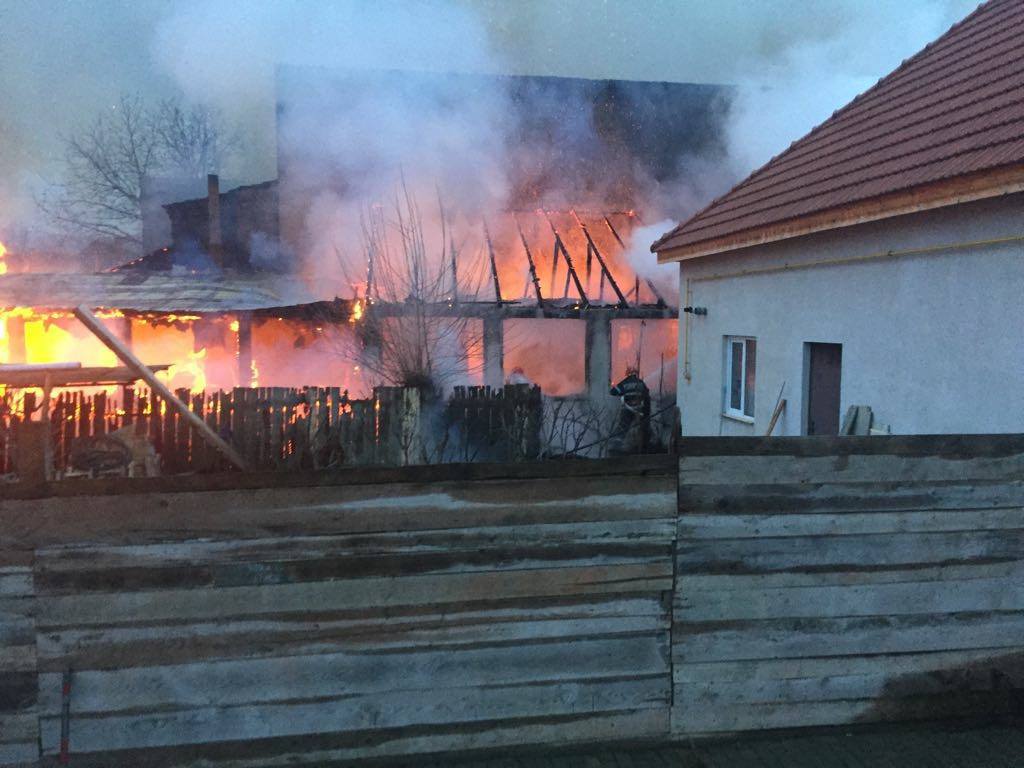 ”S-a reuşit limitarea incendiului pentru a nu se mai extinde la alte construcţii. În acest moment incendiul este localizat, limitat şi nu mai există pericol de propagare. Se acţionează în continuare pentru lichidarea ultimelor focare”, arată sursa citată.
