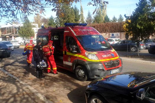Un echipaj SMURD este prezent la faţa locului pentru a asigura primul-ajutor în caz că vor fi persoane intoxicate cu fum.