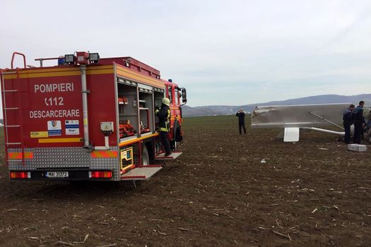 ”Ajunşi la faţa locului, pompierii au constatat că în aeronavă se afla doar pilotul, conştient, dar cu diferite leziuni”, arată IGSU.