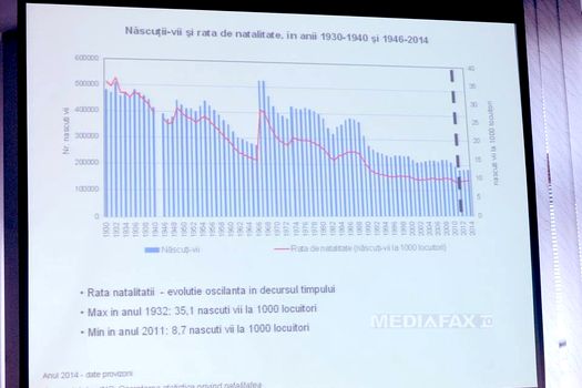 Preşedintele INS a precizat că numărul deceselor în România se menţine constant în ultimii 20 de ani, variind între 240.000 – 260.000 de decese anual, în timp ce numărul de născuţi-vii a scăzut semnificativ, ajungând la 170.000 în 2014.
