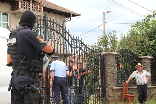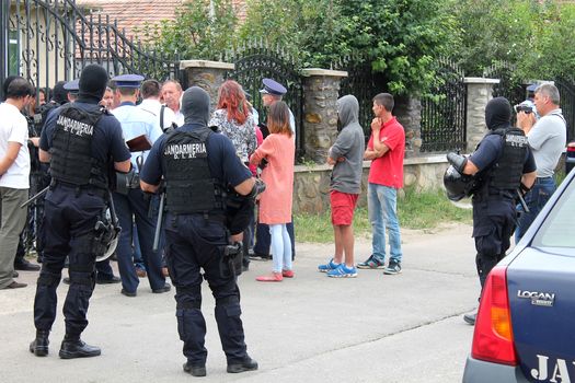 Pentru a-i linişti pe oamenii baricadaţi în curţi şi care ameninţau că îşi vor da foc au intervenit zeci de poliţişti şi jandarmi de la Gruparea Mobilă „Fraţii Buzeşti” din Craiova.