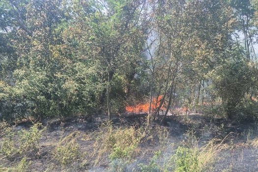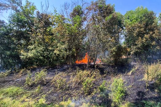 Incendiul se manifesta pe o suprafață de aproximativ 600 metri pătrați, cu flăcări ce afectau atât vegetația uscată, cât și zonele cu mărăciniș.