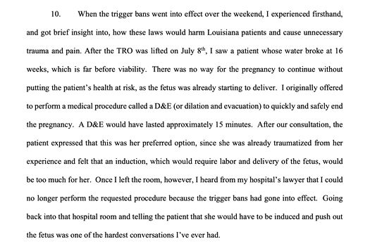 Şi nu doar Nancy trece prin asta, ci şi alte femei din SUA. Valerie Williams, ginecoloagă din Louisiana, a dat mărturie împotriva interzicerii dreptului la avort, povestind despre o pacientă de-a sa care a fost forţată să îndure „un travaliu lung de câteva ore, dureros, doar pentru a naşte un fetus nonviabil, deşi ea nu şi-a dorit să păstreze sarcina şi a primit cel mai bun sfat medical în acest sens”.