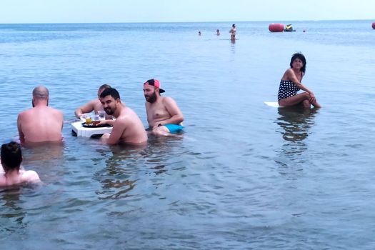 Ca să scape de insecte, turiştii se refugiază în apă, iar unii mănâncă şi beau în mare.