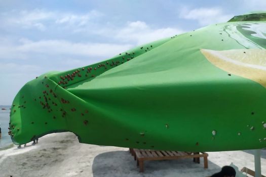 Buburuzele le strică distracţia turiştilor. Sunt peste tot, inclusiv pe plajă unde acoperă şezlongurile şi mesele.